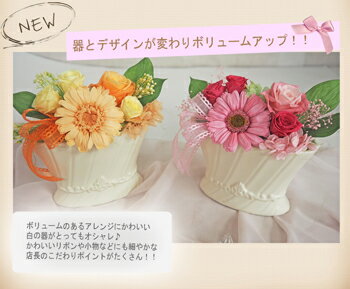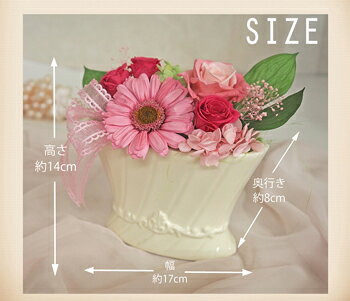 ご覧の商品につきまして 使用花材 プリザーブドガーベラ・ローズ・グリーン・その他 サイズ 幅・約17cm奥行き・約8cm高さ・約14cm 使用花器 陶器 注意点 ・プリザーブドフラワーですので水をあげないでください。