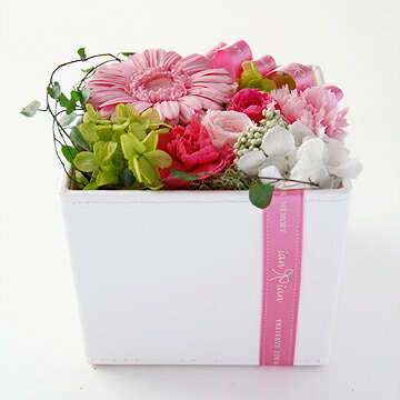 珍しい!ガーベラプリザーブド プリザーブドフラワーでもまだ珍しいガーベラが主役の人気ボックスアレンジです。
